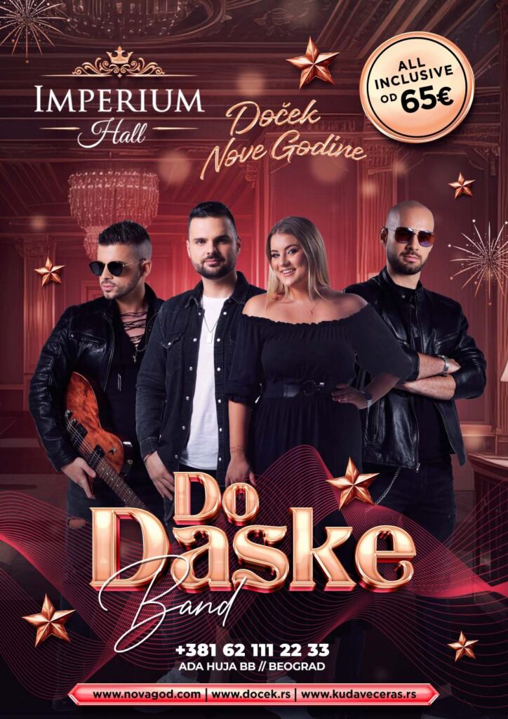 Doček Nove godine 2026. u Imperium Hall-u je savršena prilika da proslavite ulazak u novu godinu na tradicionalan i srdačan način. Ovaj događaj nudi kompletnu svečanu večeru koja će zadovoljiti sve vaše ukuse, dok će do daske bend obezbediti muziku koja će vas zabavljati tokom cele noći. Cene počinju od 65€, a uz to dobijate all inclusive piće, što znači da možete uživati u raznovrsnim napicima bez ograničenja.