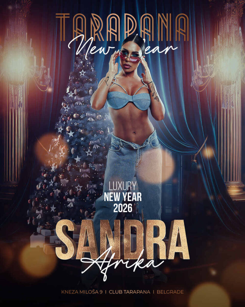Doček Nove godine 2026. u Kafani Tarapana je savršena prilika da uživate u tradicionalnom ambijentu uz modernu muziku. Ove godine, popularna pevačica Sandra Afrika će vas zabavljati svojim hitovima, stvarajući veselu atmosferu koja će vas pratiti tokom cele noći. Sa cenom od 50€ po osobi, uz uslov potrošnje, ovaj doček je idealan za sve koji žele da proslave Novu godinu na autentičan način.